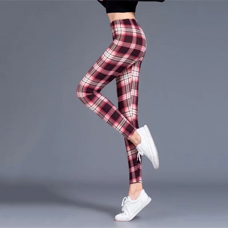 - Grid Printed Fashion High Waist Pants Athleisure Sexy Leggings